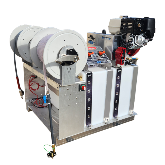 The Enchilada is a two in one soft washing and power washing skid that allows you to do a little bit of everything from one compact, highly capable, and premium system.